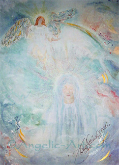 | “Mother Mary” was painted upon commission by a woman that found me on the internet. She had an accident where a tanker truck hit her car and she was engulfed in flames and had a near-death experience. She left her body and was hovering over the scene. She had Mother Mary appear to her several times and was so moved by the experience that she commissioned me to paint “Mother Mary” for her. | ||||||||||||||||||||||||||
